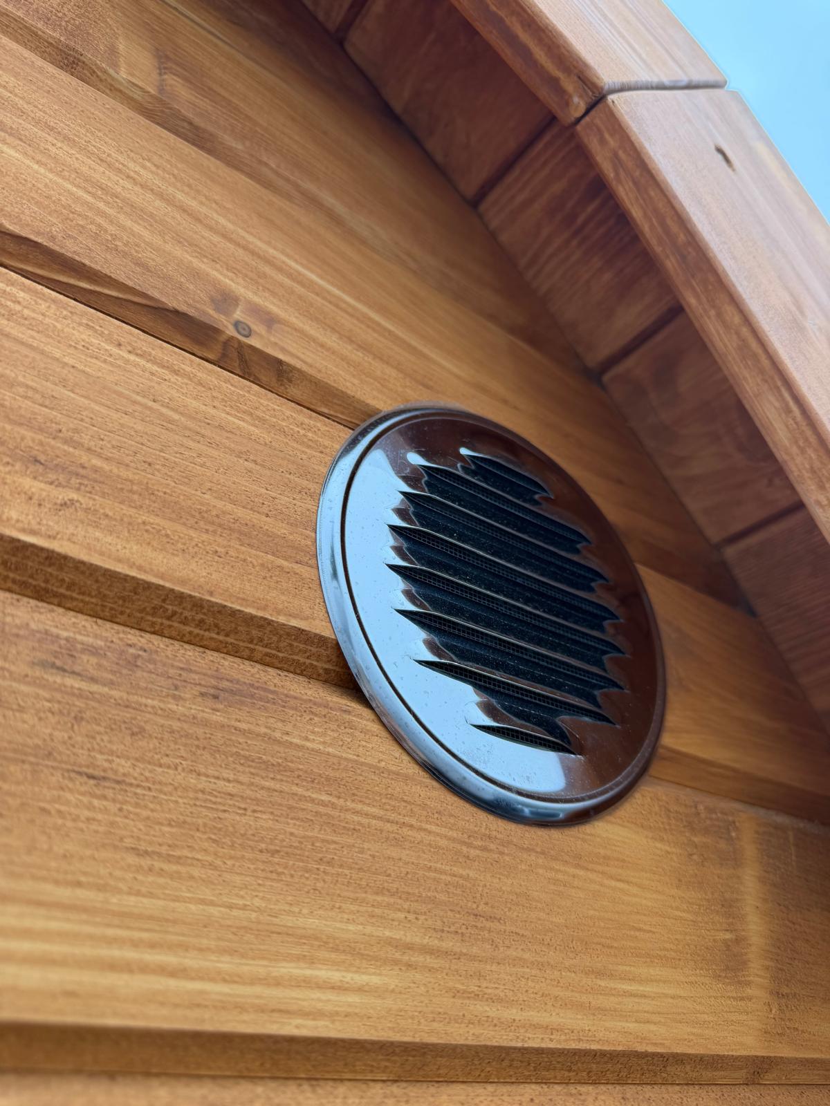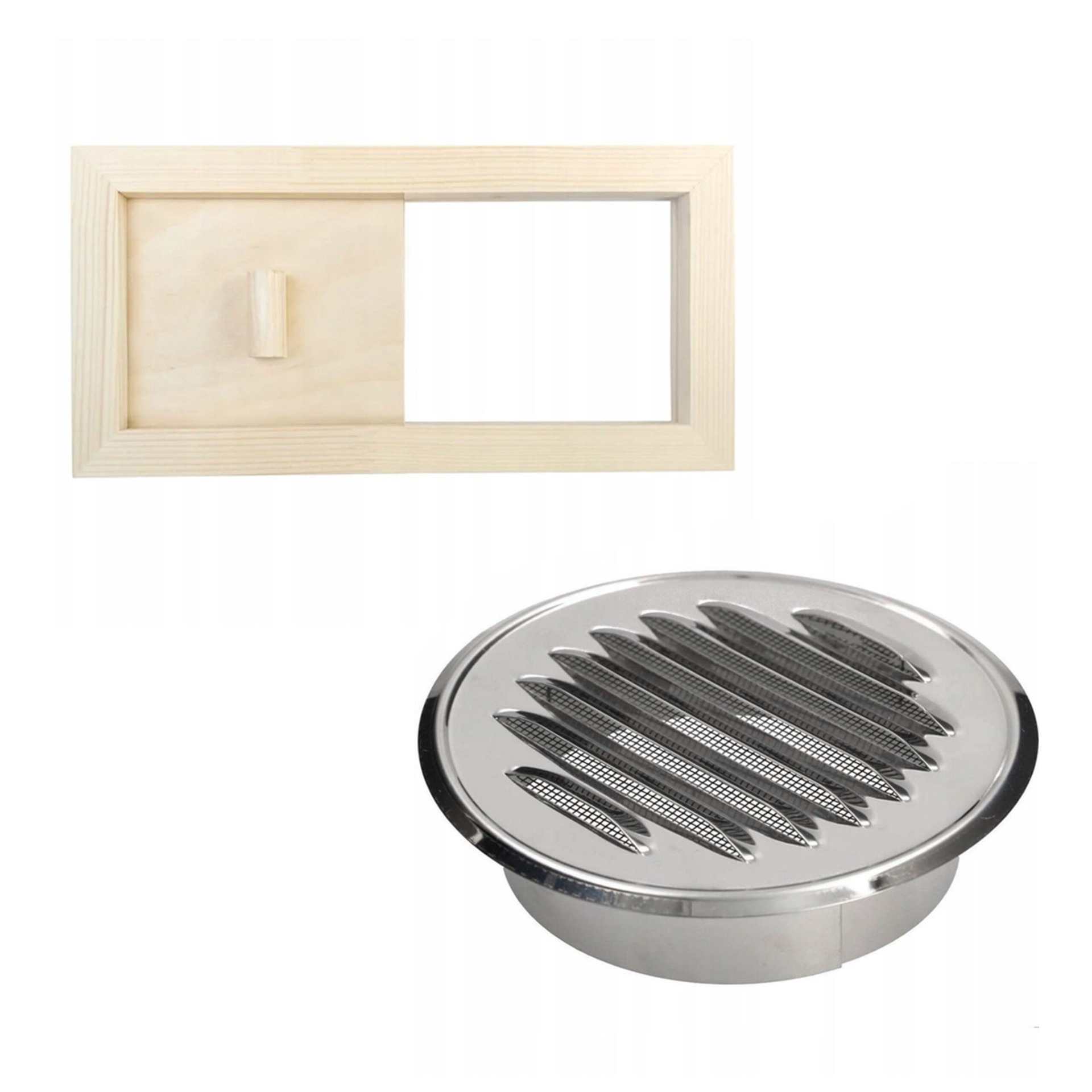 Ventilační mřížka včetně vnitřní dřevěné šoupací regulace. Vhodné pro sauny QUADRO i pro všechny typy sudových saun.