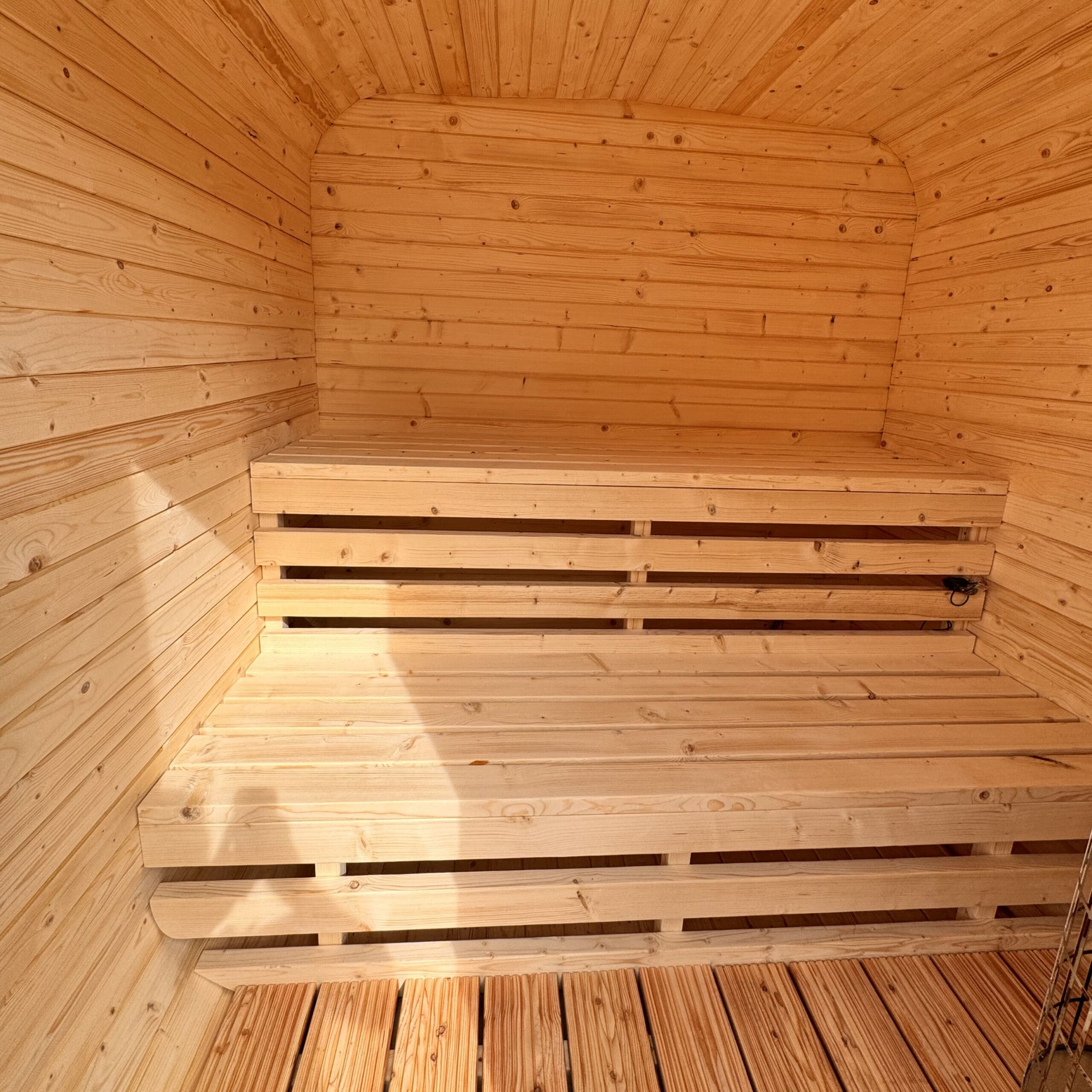 Velmi oblíbená a kvalitní finská sauna typu QUADRO Premium v rozměru 200x200 je vyrobena ze skandinávského smrku C24 o tloušťce 45 mm a pojme 4-6 osob. Připravena pro instalaci elektrických kamen. Na přání možno dovybavit LED osvětlením a dalším příslušenstvím pro sauny. Lavičky u této sauny jsou patrové u zadní stěny, vstupní dveře jsou v levé části předního čela a prostor pro kamna je v pravé přední části sauny.