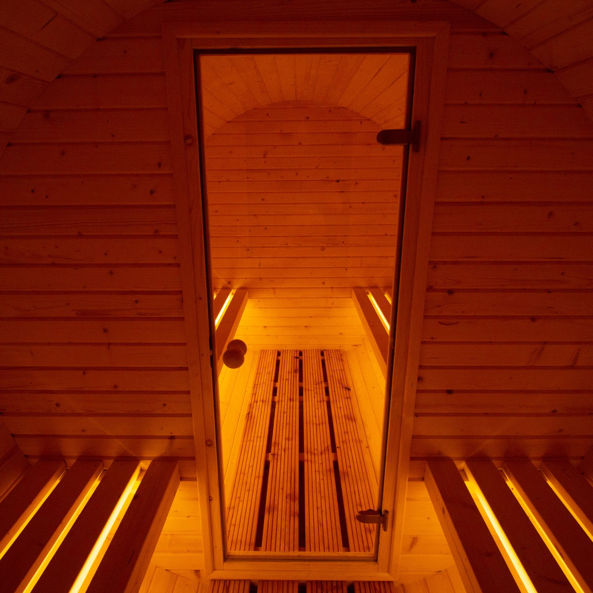 Kvalitní zahradní sudová sauna v rozměru 200 x 300 cm s předsíní o délce 70 cm je vhodná pro 4-6 osob. Díky prostorné předsíňce nabízí dokonalý komfort. Vyrobena ze skandinávského smrku C24 o tloušťce 45 mm. Připravena pro instalaci elektrických kamen, nebo kamen pro zatápění dřevem. Na přání možno dovybavit proskleným panoramatickým čelem a dalšími doplňky v sekci příslušenství pro sauny.